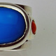 大き目のトルコ石にサンゴをあしらったリングです。 肌のトラブルを考え、指との密着部分を少なくしたデザインで、ユニセックスでシャープな仕上がりです。 in The Stone を代表する作品の一つです。